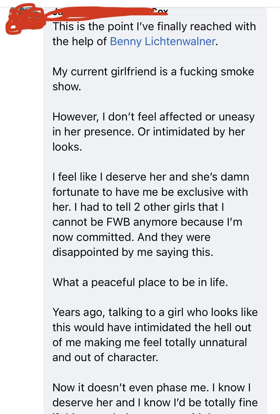 After we broke up, I focused ALL of my time on work, BJJ, and DATING. I went out 4x per week off and on for about 1.5 years. I had all the experiences I never got to have as a younger guy, but it was a real challenge to solve all the bad wiring from my youth. Ultimately, I debriefed every female interaction with my self and became 1% better with women day-by-day.